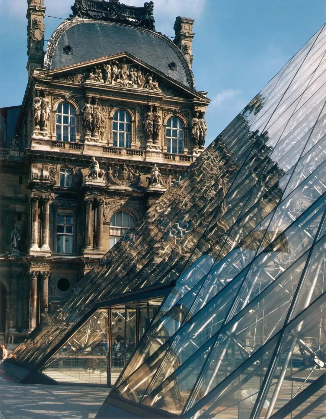 以卢浮宫金字塔为例,面对法国人的质疑,贝聿铭以51°锥角呼应吉萨金字塔,却赋予其透明的现代性。玻璃幕墙将巴黎天空纳入建筑表皮,使古典符号焕发新生。当游客从地下大厅回望,历史悠久的卢浮宫立面被框入金字塔斜边,实现“借景”的全球化表达。