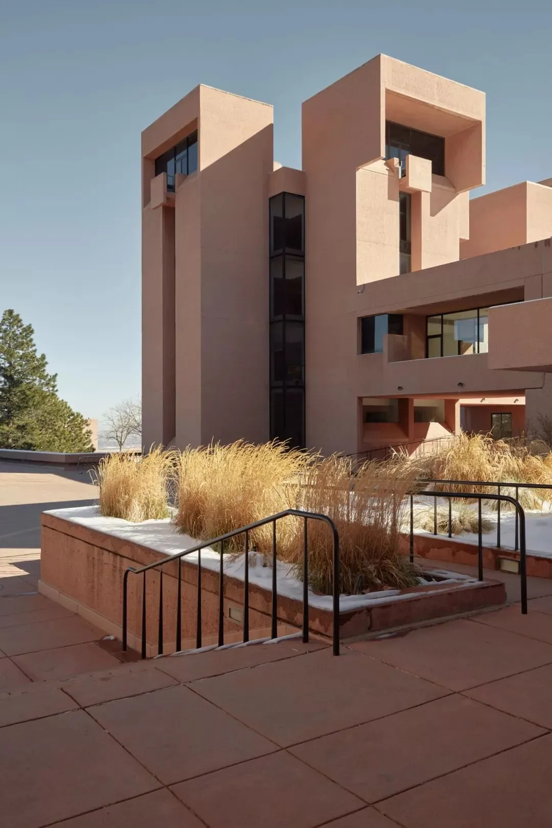 《长物志》对材料质感极为敏感:“石阶须带苔痕、木纹应显天然、漆色限于朱玄。”贝聿铭将这种材料诗学注入现代建材,如其设计的美国国家大气研究中心,为融入落基山脉,贝聿铭深入研究印第安人岩居遗址。最终采用当地砂岩研磨成混凝土骨料,使建筑呈现与山体一致的赭红色。