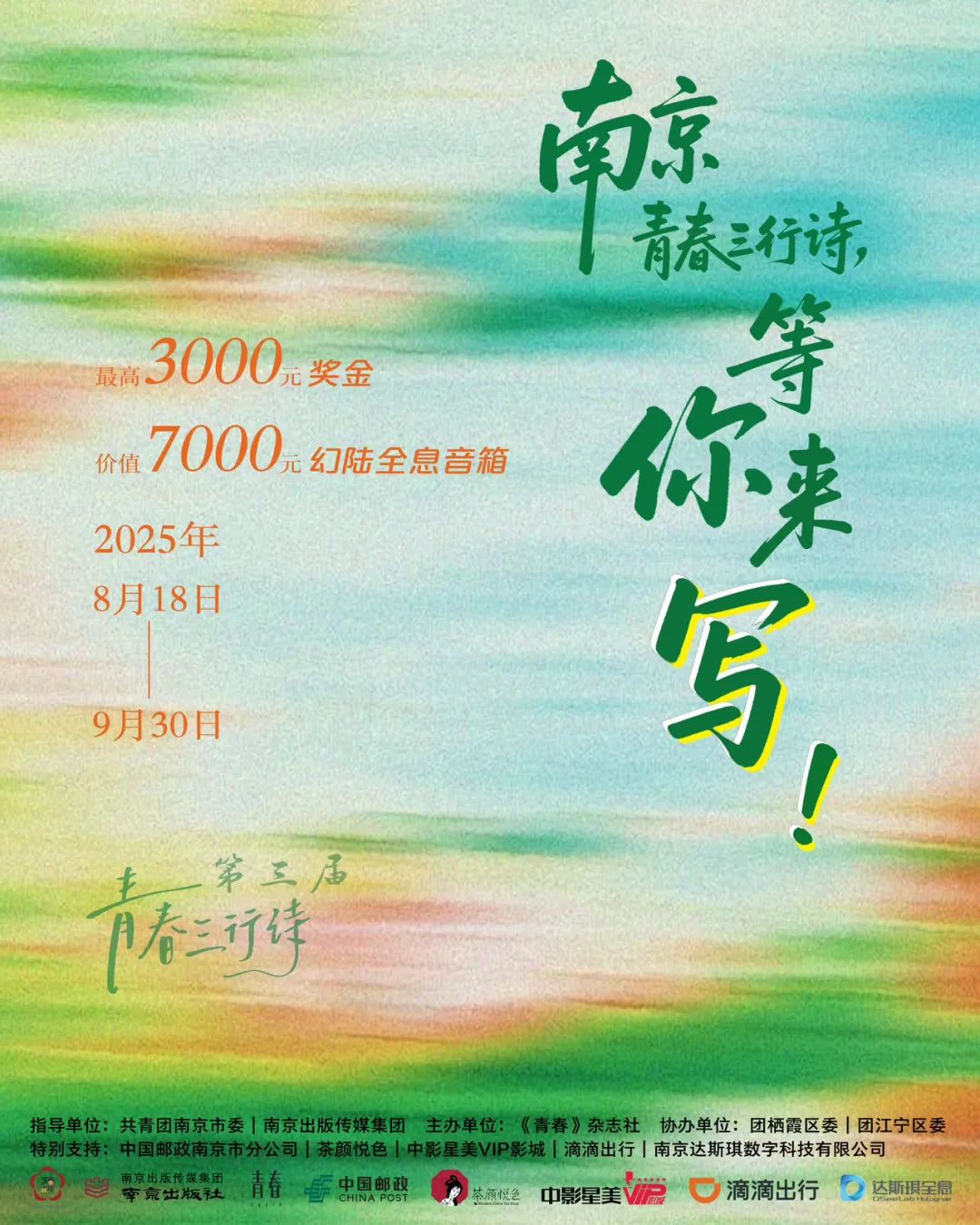 ÎÒÃÇÑûÇëËùÓÐÈË£¬¼ÓÈëµÚÈý½ìÇà´ºÈýÐÐÊ«µÄ´´×÷´óÈüÖУ¬Î§ÈÆÖ÷Ìâ“ÎÒÔÚÄϾ©µÄÈÕ×Ó”Êéд¶ÀÊôÓÚÄãºÍÄϾ©µÄÇà´ºÈýÐÐÊ«¡£