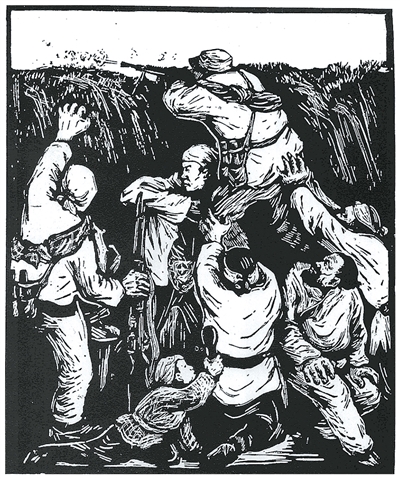 当敌人搜山的时候(黑白木刻)彦 涵作